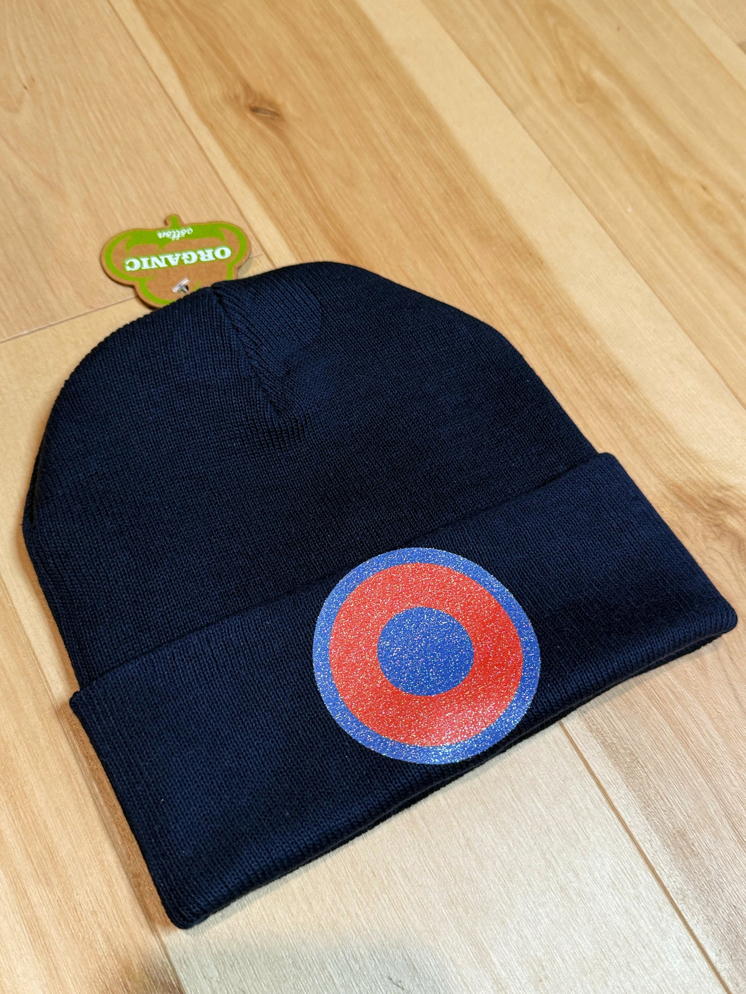 Sparkly donut Phish screen print transfer on 100% Organic Cotton Navy Beanie.